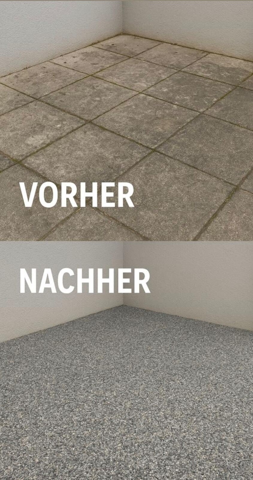 „Frischer, fugenloser Steinteppich: modern, pflegeleicht und perfekt verarbeitet für einen hochwertigen neuen Look.“